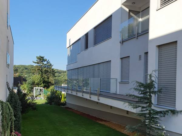 Byt č. 1 na 1. NP:Exkluzívny 3- a 4-izbový byt v rezidenčnom rodinnom dome Vila Terézia, určený na dlhodobý nájom, sa nachádza na Tajovského ulici v najlukratívnejšej rezidenčnej zóne Bratislavy v oblasti Slavína, Horského parku a Kalvárie. Preslnený byt je situovaný východo-juhozápadným smerom na miernom svahu Kalvárie s výhľadom do údolia Horského parku. Z terasy s rozlohou 40 m2 obklopujúcou dve strany bytu je jedinečný výhľad na údolie a zeleň Horského parku. Byt s úžitkovou plochou 134 m2 a celkovou plochou 174 m2 je situovaný na 1. nadzemnom podlaží rezidenčnej vily postavenej iba s tromi bytmi. Byt sa ponúka zariadený a pozostáva z otvorenej dispozície kuchyne so všetkými zabudovanými spotrebičmi, z jedálenskej a obývacej časti, 2 izieb (z ktorých je jednu izbu možné interiérovo rozdeliť na dve samostatné izby) a 2 kúpeľní s toaletami. K bytu prislúcha vlastný priestranný sklad (pivničná kobka) s výmerou 6,50 m2. Súčasťou vybavenia bytu sú klimatizácia, podlahové kúrenie, vstavané skrine a hliníkové okná s externými žalúziami. Byt má vlastný zabezpečovací systém. Slnečné kolektory na ohrev teplej vody výrazne napomáhajú zníženiu nákladov na energie. Parkovanie je zabezpečené na vlastnom dvore a v garáži, ktorá je súčasťou rodinného domu. Veľká vnútorná záhrada s vonkajším záhradným prístreškom s prívodom vody a elektriny, schovaná za domami, vytvára súkromné zázemie na oddych, záhradné grilovanie, bezpečné hry detí spojené s možnosťou zapojiť sa do pestovania a zberu ovocia a zeleniny. Tichá lokalita a výborná dostupnosť do centra mesta (mikrobusom MHD), blízkosť obchodných centier a výborných škôl ponúkajú kvalitné bývanie pre najnáročnejších klientov.